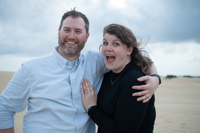 Ryan told Kaitlyn for their anniversary he was going to plan an Outer Banks trip to include their closest friends. After a great weekend, they all went to Jockey's Ridge to watch a final sunset. While taking photos, Kaitlyn turned around to find Ryan on one knee! Everyone celebrated the special moment together.